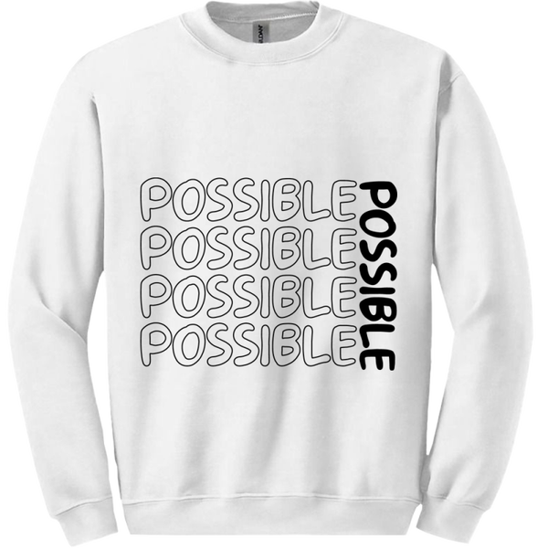 Stap in comfort en motivatie met het "Possible" sweatshirt – een stijlvolle, zachte trui met een krachtige boodschap. De minimalistische, maar impactvolle bedrukking herinnert je eraan dat alles mogelijk is, of je nu een nieuwe uitdaging aangaat, je dromen najaagt of gewoon een statement wilt maken.