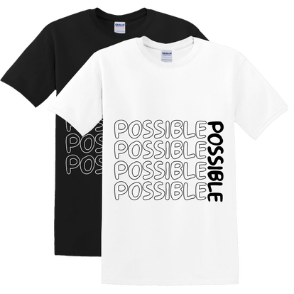 Stap in comfort en motivatie met het "Possible" T-shirt – een stijlvol, zacht t-shirt met een krachtige boodschap. De minimalistische, maar impactvolle bedrukking herinnert je eraan dat alles mogelijk is, of je nu een nieuwe uitdaging aangaat, je dromen najaagt of gewoon een statement wilt maken.