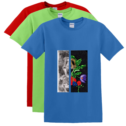 Ontdek het perfecte balanspunt tussen verleden en verbeelding met dit unieke t-shirt.